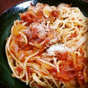 簡単♡アマトリチャーナ グアンチャーレもペコリーノも無いけれど家にある材料で簡単美味しく作りました。辛くないのでお子様にもどうぞ♪ 材料 (2人分) パスタ 200g ト...