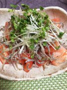 トマトと大根千切りのサラダ 簡単!野菜をたくさん摂れるサラダです☆ 特製ドレッシングが野菜と良く合いますよ♫ 材料 (2人分) トマト(輪切り) 1個 ダイコン(千切り) 10...