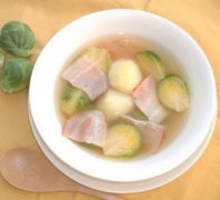 ベーコンと芽キャベツの簡単あったかスープ 寒い冬にぴったりのあたたかいスープです。 ベーコンがスープの味をひきたてます。 サガミハム 材料 (2人分) ベーコンスライス...