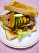 ハロウィン!パンプキンポークサンドイッチ 豚バラと野菜たっぷり和風サンドイッチ ハロウィン!パンプキンポークサンドイッチ 食パン 豚バラ かぼちゃ 茄子 玉葱 レタス マヨネ...