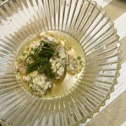 鯵のなめろうでさっぱり三杯酢和え 市販の鯵のたたきを使って簡単なめろう~ ひと手間加えて甘めの三杯酢に漬けこんで美味しさアップです。 鯵のなめろうでさっぱり三杯酢和え...