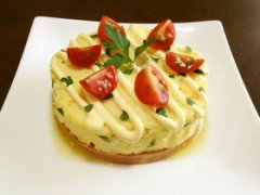 ロースハムとポテトのケーキ風サラダ いつものポテトサラダを可愛くケーキ風に。 簡単なのにおもてなし料理などに大変身♡ 材料 (2人分) 玉ねぎ 1/4個 きゅうり 1/5個 ゆで卵...