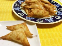 かまぼことチーズと玉ねぎの揚げワンタン