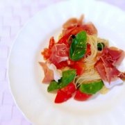 トマトとバジルの冷製パスタ☆生ハムのせ