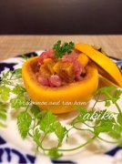柿と生ハムサラダ 簡単で、華やかなお料理です♬ おもてなしにも、抜群☆ 材料 柿 1個 生ハム 30g オレンジオリーブオイル 大1/2 ※柿カップ用 2個 1 柿の皮を剥き7.8㎜の角切りにし...