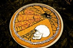 ハロウィン クッキーケーキ!こわウマ! アメリカでは、パーティーやお誕生日会に、ピザシートで大きなクッキーを焼きます。ハロウィン用に こわ~いデコレーション! 材料 (...