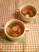 レタスと魚肉ソーセージのスープ 時間がない時や朝食にいかがですか?レタスと魚ニソだけですが魚ニソからいいおだしが出ますよ♪2010.1209話題入り感謝 レタスと魚肉ソーセージ...