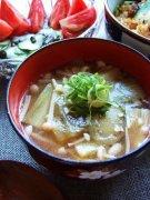 かぼちゃとわかめの味噌汁 かぼちゃの甘味がお味噌汁によく合います 単!! 材料 (1人分) かぼちゃ 50g わかめ(乾燥) 小さじ1 ねぎ(小口切り) 適量 だし汁 200cc みそ...