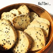 【簡単】ごまクッキー♬ 硬めのサクサク、ごまクッキー! 材料 (20枚分) 薄力粉 100g 片栗粉 50g 豆乳 大さじ2 砂糖 50g マーガリン 50g グラニュー糖 適量 黒ごまor白ごま 大さじ2 1 【...