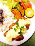 鶏肉と玉葱とピーマンのマスタードソテー