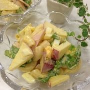 シャリシャリ☆林檎のマカロニサラダ♡ ほんのり甘い林檎のシャリシャリ感が美味しいマカロニサラダ♡ お弁当にも♪ 材料 (5人分) マカロニ 100g りんご 60g たまご 2こ ロースハ...