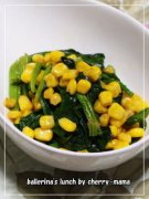 お弁当★ほうれん草とコーンのバター麺つゆ