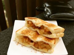 アップルパイ風簡単ホットサンド ホットサンドメーカーを使って熱々りんごとバターのサンドイッチ。鉄製直火対応なのでアウトドアではロケットストーブで調理可能 アップルパ...