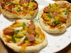 簡単!ミニピザ 時短発酵。オーブンを使わずに焼きました。もっちり生地で家族に好評でした♪ 簡単!ミニピザ 強力粉 薄力粉 ドライイースト 塩 オリーブオイル ぬるま湯 ケチャ...