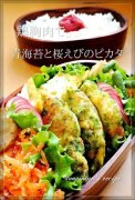 お弁当☺鶏胸肉で青海苔と桜えびのピカタ