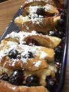 ミックスベリーフレンチトースト ベリーいっぱいのオーブンを使ったフレンチトーストです。寝かす時間が長いですが、支度は簡単! ミックスベリーフレンチトースト バター ブラ...