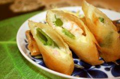エビとスナップエンドウのチーズ春巻き エビの旨みとスナップエンドウのサクッとあま~い風味がチーズにとろけて絶妙な春巻き!! 材料 (5本) エビ(中サイズ) 5~8尾 スナッ...