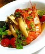 【スペイン】きのこと有頭エビのアヒージョ エビの頭から出た...