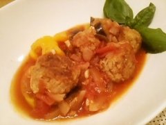 カマンベール入りミートボールのトマト煮 カマンベール入りのミートボールを野菜たっぷりのトマトソースで煮込みました(^^)v。トマト缶使うから楽チン♪ 材料 (2人分) ■玉葱...