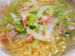 たっぷり白菜とベーコンのしおらーめん♪ しお味の生らーめん。白菜とベーコンを煮て付いてるスープを入れるだけ!具は炒めないのでサッパリ食べれます。 材料 (1人分) しお...