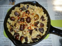 イシスキで焼き栗とキノコのパラパラ炒飯