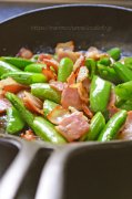 スナップエンドウとベーコンのソテー
