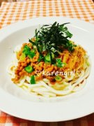 簡単♡納豆&なめ茸バターの冷やしうどん♡
