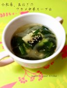 小松菜、玉ねぎのワカメ中華スープ♪