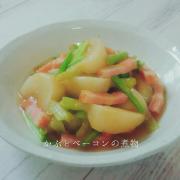 野菜のおかず♡ かぶ とベーコンの煮物 かぶとベーコンを優しいお味で煮て、煮汁をあんかけにします(๓´˘`๓)♡ 材料 (2~3人分) 小かぶ 大 2個 ブロックベーコン 90g 水 200ml 鰹だ...