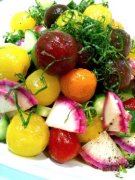 カラフルトマトサラダ 見た目に可愛いサラダです。中にお豆腐が隠れています。。。 材料 (2人分) プチトマト(赤) 5個 プチトマト(黄) 5個 プチトマト(白) 5個 プチトマト...