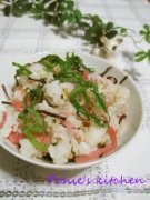 夏にさっぱり☆紅生姜と大葉と塩昆布ご飯♪