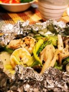 海老とアスパラ、きのこのホイル蒸し