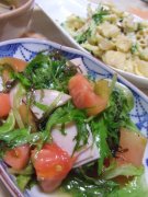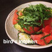 トマトときゅうりの胡麻サラダ。大葉のせ。