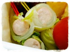お弁当のすき間に♪ロール白菜ウインナー 冬場は白菜でウインナーを巻いておかずを一品増やしましょ。 材料 (1人分) 粗びきウインナー 2本 白菜 1/4枚 1 白菜をラップに包み、...