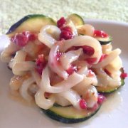 イカとズッキーニの梅味噌マリネ 紅白に緑のコントラストが食欲をそそる!梅の酸味と味噌の旨みが仕事で疲れた身体を癒してくれる、ヒィーリングな1品! イカとズッキーニの...