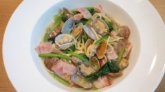 あさりとベーコンほうれん草のスープパスタ