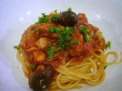 鱈とキノコのトマト ソース パスタ♪ パスタは具材の組み合わせを考えるのが楽しいですね!涼しくなると鍋物。その鍋物に入れる具材でパスタを作ってみました~♪ 材料 (1 人分...