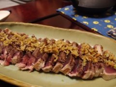 がっこわさびガーリックだれの鰹たたき いぶりがっこと焦がしにんにくの香ばしさが、かつおのたたきをより風味豊かに。 いぶりがっこの旨味のきいた塩だれが旨い一品。 がっこ...