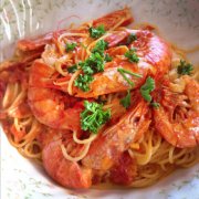 旨み凝縮!赤海老のガーリックトマトパスタ
